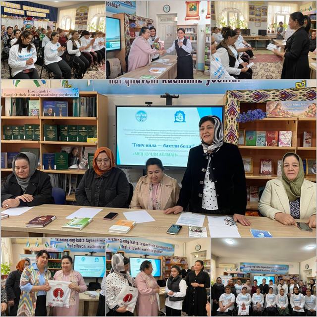 Urganch tumani Oila va xotin-qizlar bo‘limi hamda Urganch tumani axborot-kutubxona markazi hamkorligida O‘zbekiston Respublikasi Oliy Majlisi Jamoat fondining davlat grantlari asosida